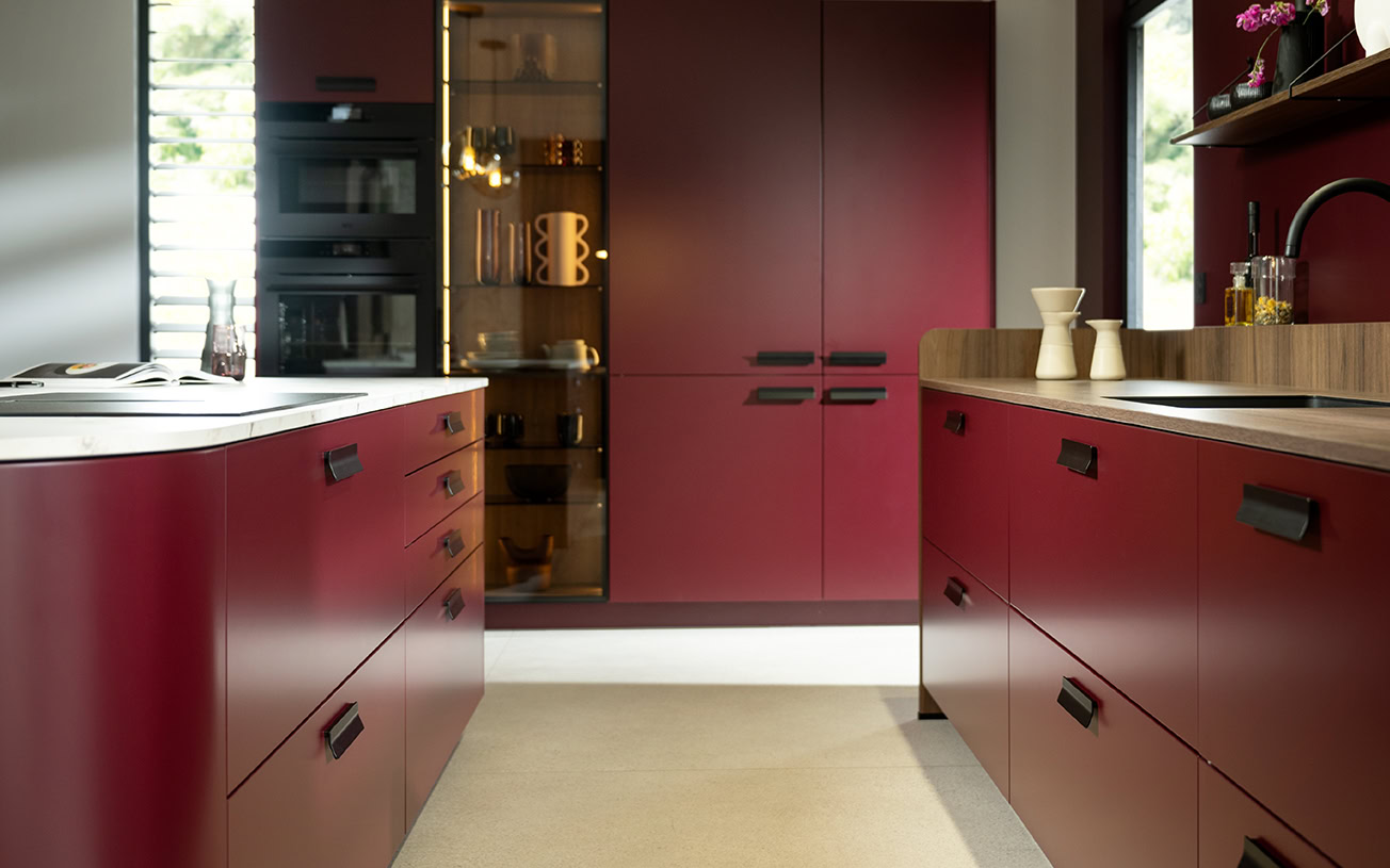 Fronten består av en 19mm tykk lakkert MDF, med mykt avrundet kant, som gir et moderne og raffinert uttrykk. Den glatte, lakkerte overflaten er enkel å rengjøre og tåler daglig bruk, mens de avrundede kantene tilfører en elegant detalj som myker opp kjøkkenets uttrykk.
