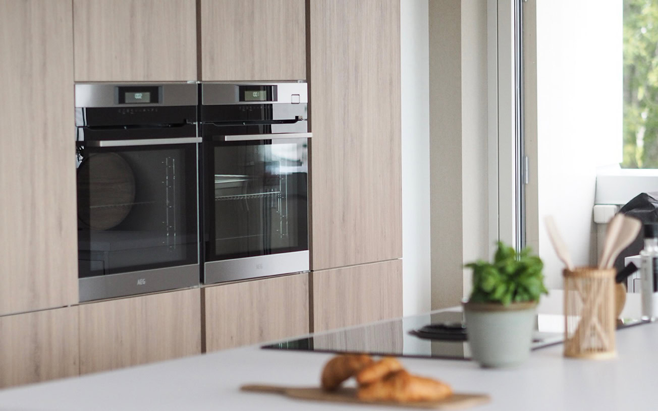 Deres stilfulle Arcos-kjøkken i Pastel Oak og Everest viser deres sans for luksus og unike smak. Modellen reflekterer deres kjærlighet for nøytrale og naturlige materialer og som tilfører en varm og innbydende atmosfære til kjøkkenet.
